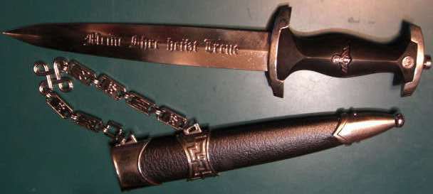 ナチス NSDAP 親衛隊 SS指導者が持つ名誉短剣 初期型のストレートタイプと後期型の チェーンの付いた2種。 SS黒服に合わせたい小物です。 どちらも原寸大の玩具であり 合金製メッキの刀身部分で 雰囲気を楽しむだけのアクセサリーおもちゃです。 SS長剣サーベルも同様で合金にメッキだけの刃部分 この細さで長い刀身を曲がらずに合金で再現はスゴイです。 展示用のおもちゃssサーベルですが振り回すといけません怪我の元ですし本体は強度はありません ディスプレイ玩具模造刀です。 このスラリと細長い剣 アルゲマイネSS黒服に似合いすぎます。 どちらも限定再入荷! ほかに憲兵アイテム 胸ゴーゲットや階級章、警察憲兵腕アドラーなども入荷販売中です。