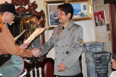 公演「ブロークン ドイチュ」9月10日~10月2日まで http://www.tobunken.com/index.html ・監修 後藤修一 ドイツ兵軍装ガイド訳者 ヒトラー研究家 ・衣装応援 カンプバタリオン!! NSDAP第三帝国独軍装販売店 第三帝国ナチス時代のドイツ・・・ヒトラー総統、そして ・・・・詳細は、こちら!http://www.tobunken.com/news/news20100821162105.html 下北沢小劇場『楽園』 世田谷区下北沢2-10-8 藤和下北沢ハイタウンB1 TEL03-3466-0903 演劇チケット等の問い合わせ kampf bataillo!!第三帝国ドイツ軍アイテムの購入希望は、こちら http://www.kampfbataillon.com/shopping/index.html ショップHPより注文が可能です(携帯電話からは閲覧できない場合があります) 10月発売予定 ・ナチ独将校将官オールシーズンロングコート ・ドイツ騎士鉄十字勲章 高級版 925シルバー製の枠にコア中心はスチールで積層圧着構造。リボン留めの環も銀製です。 別売りで銀製の柏葉章、剣つき柏葉章もございます。 ・ドイツ空軍ルフトバッフェ女子空軍補助制服は、まだ参考品です。リクエスト次第では部隊配備も検討中。 次回は、12月または、1月を予定しています。・・・次回のドレスコードは黒軍団・・・なのか? カンプバタリオン!! 営業時間AM9:00~PM6:00 定休日/日曜 祝日(不定期休有) http://www.kampfbataillon.com/ 大隊ブログhttp://kampfbataillon.blog.shinobi.jp/ 携帯からもアクセス可能です。 9/4~9/5臨時休業/出張等につき返信、出荷なども帰還後より順番に対応になります。