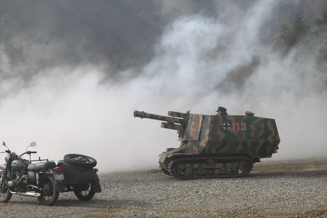 英国W&P出店取材の戦地にて ①連合軍首脳達を連行するssヒトラーユーゲント少年兵(逆か? にこやかに記念撮影を将軍達の昼に) ②有名な改造タイガー1型戦車 再現戦場を走り回り連合軍を恐怖のどん底に 独軍ファンは歓喜!排煙はすごいですが限りなく原寸大に近く動き、発砲し遊べるティーガーは羨ましく ドイツ軍リエナクターの守護神。③実物アブロランカスターの展示(有料で機内に入れます)マリーンエンジンや展示だけでもニコニコですが数日後この爆撃機が会場の広い戦場に飛来します!爆音に鳥肌が立ちます。 それぞれ自国の戦争や歴史についての関心が日本とは全く異なります。欧州~世界は人間の覇権争いの歴史。理解したうえで先祖代々の先人ベテラン達の歴史の軌跡に自然に接する。家族連れや子供が参加者や来場者に多いのも やはり違うな日本とは・・・戦勝国だから? 何世紀も国境を接する隣国どうしですから争の歴史から人々の歴史観が異なるのも当然ですが いかがなものか。 カンプバタリオン!! 営業時間AM9:00~PM6:00 定休日/日曜 祝日(不定期休有) http://www.kampfbataillon.com/ 大隊ブログhttp://kampfbataillon.blog.shinobi.jp/ 携帯からもアクセス可能です。