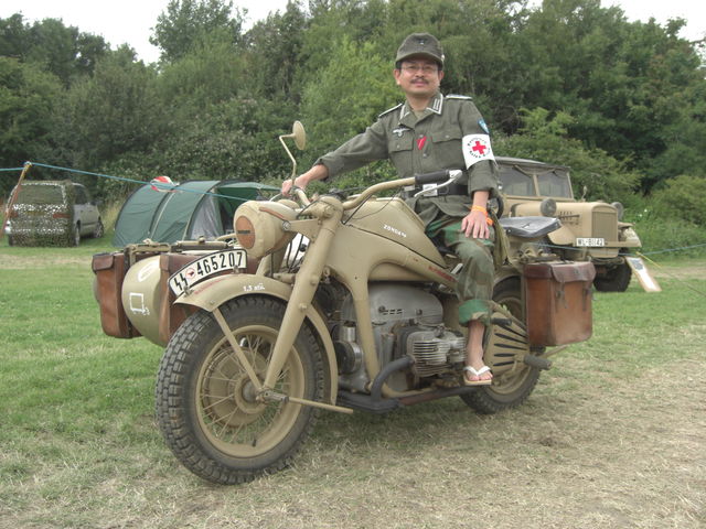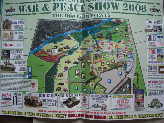 カンプバタリオン!! <8/16夏期休暇>で、ございますが 入間市ジープ機能美展に遊びに&戦友に補給任務に参ります。 昼前後より・・・雨の現地予報でございますが たぶんLWドイツ空軍のカッコしていると思います(予定)!? 8/17は、ちょっと未定ですが、入間市博物館に行ければ午後に伺います。 ***** やっと帰国後落ち着いてきましたので これから 合間を見て 軍事博物館見聞やら ☆WAR&PEACE☆SHOW2008のレポートも随時してゆきたいと思います。 ここは平和な、いちぶんの1の原寸大の戦場・・・・・ いやになるくらい広大で果てしない。 基本がAFV車両、戦車のサイズですから 人間=歩兵はつら~いフィールド戦場です。 でかすぎて ヘリコプターの空中遊覧の見学もあるぐらいなんですね。 あ~規模が考えがケタが違いすぎる もう毎日が天国?地獄の楽しさです。 本来の出店や取材なんか どーでもいい 感じで 毎朝毎晩戦場へ ふらふら~と、出かけていってしまいました(枢軸メインです) ここは外地 外国なのに あんまり意識していません!? さて、コレが海賊が書いたような戦場エリア地図(左MAP) その右上隅のちょこっとテントの絵がショップゾーン(右MAP) ここだけで1000件以上!お店があるでしょうね・・・・目眩がしましたよ。 我等はこの中のQ23に駐屯しておりました。 おおむね5mx5mブース(かなりおおざっぱ6x7ぐらいあったんじゃない おおらかネ) 店をまわったり WC行くだけでヘトヘトです(日本から自転車もって行って正解) そして全景の地図左MAPを見れば巨大さがお解りいただけるでしょうか? オフィシャルプログラムの車両の数をざっと数えてみたら2000~2500~ええっ もう数えるのやめました・・・ 現地では1000以上は余裕でココに集結しているなと思ってましたが その3倍ぐらい居たのね~ 全部見られなかったのかしら・・・・・ いや見たぞ!死ぬ気で!? これだけのスケール見ても 平和な軍事イベントとしては世界一の規模ではないでしょうか。 新兵器 新型は個人オーナーさんの戦車じゃないんです。 でもチーフテンとか所有していて 何処においとくの? コンカラータンクとかセンチュリオン・・・ いや、ここは日本じゃない 問題無しね。 戦車も装甲車も 普通に売ってるし テイクアウトしたいな~ つづく・・・・・。 たぶん ***** 8/21~25MVG本栖野外ミリタリーイベント出張です。 21日は富士学校総合火力演習のかけもちで遊撃出張です。 通常業務と通販、返信の対応も8/20午後より8/25まで お休みになりますので ご了承ください。 カンプバタリオン!! http://www.kampfbataillon.com/ 営業時間AM9:00~PM6:00 定休日/日曜 祝日(不定期休有)
